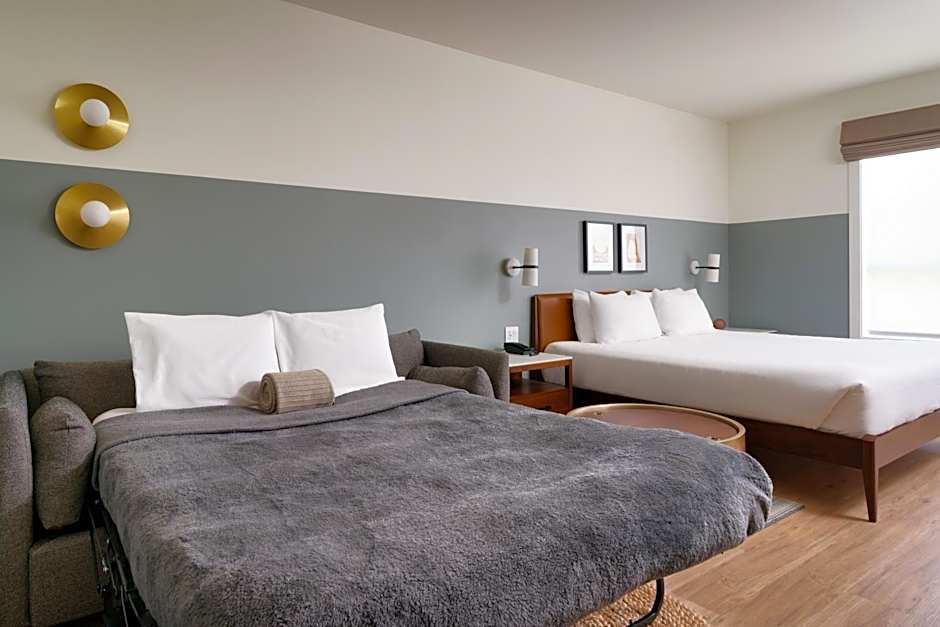 This spacious suite is consisted of of 1 living room, 1 separate bedroom and 1 bathroom with a walk-in shower and free toiletries. The well-equipped kitchenette features a refrigerator, kitchenware, a microwave and a toaster. The air-conditioned suite offers a flat-screen TV with streaming services, a tea and coffee maker, a seating area, a dining area as well as city views. The unit offers 2 beds.